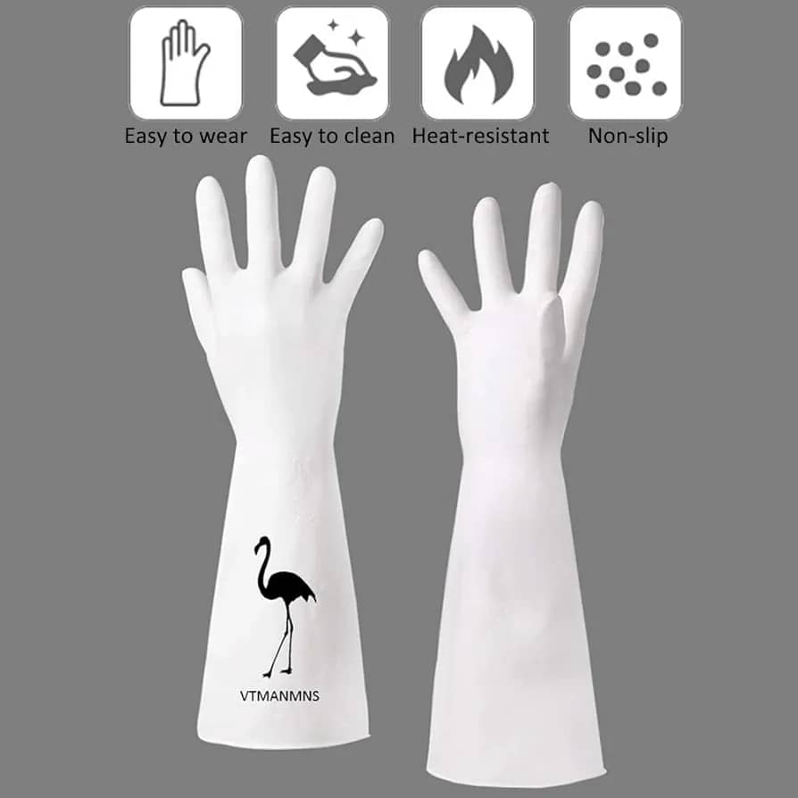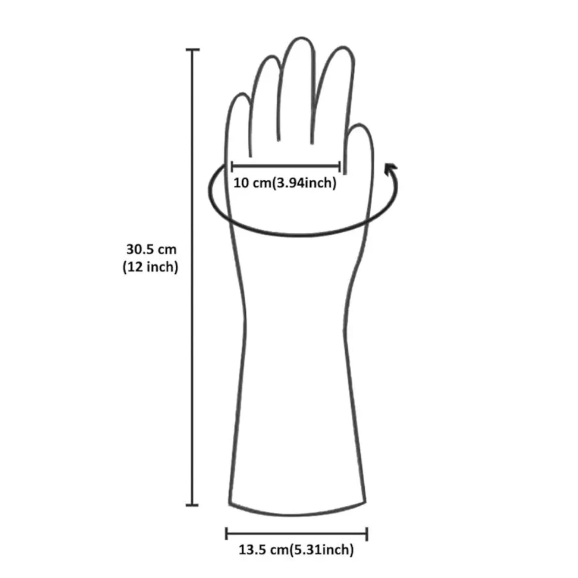 با طول ۳۱ سانتیمتر، پوشش کامل تا آرنج را فراهم میکند و از تماس مستقیم دست با مواد شوینده و آب داغ جلوگیری میکند.