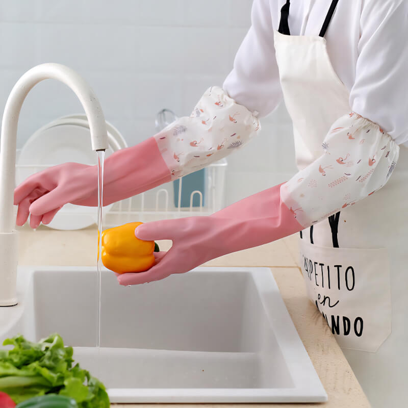 این دستکش ظرفشویی ساق بلند سیلیکونی دقیقاً همون چیزیه که لازم داری.