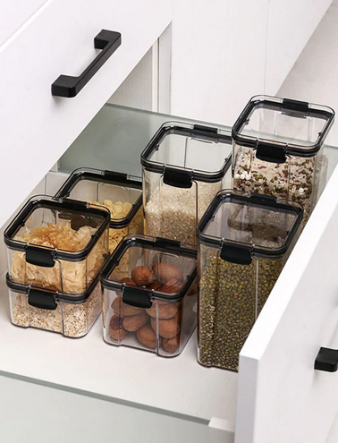 ست جا حبوبات پلاستیکی درب مشکی به نظم دهی آشپزخانه و فضای کابینت کمک می کند !