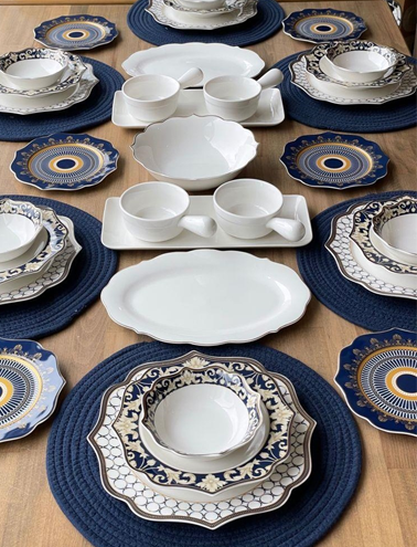 ست غذاخوری حلقه آبی برند SEMBOL میزهای و سفره شما  را با جادوی رنگ و الگوها می پوشاند.