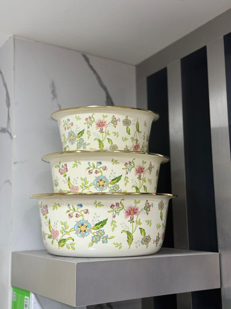 ست ۳ تکه کاسه لعابی گلدار با طراحی زیبا و کیفیت بالا، گزینه‌ای عالی برای سرو غذا، سالاد و میوه است. این ست وارداتی، با لعاب براق و مقاوم در برابر خط و خش، جلوه‌ای خاص به میز غذاخوری یا آشپزخانه‌تان می‌بخشد 🌸