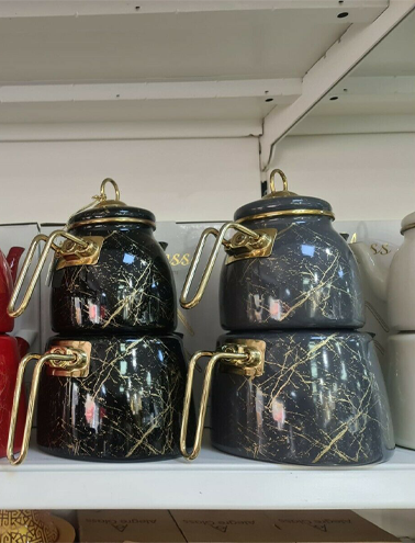 ست کتری و قوری ماربل پاچی مدل Elite Class با بدنه لعاب کاری شده کیفیت بالا و دسته های استیل امکان کارکرد آسان را به شما می دهد و به آشپزخانه شما ظرافت بیشتری می بخشد.