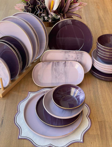 سرویس غذاخوری 27 پارچه طرح مرمر بنفش ROSSEV ، از جنس سرامیک باکیفیت و در طیف رنگی بنفش عرضه می شود.
