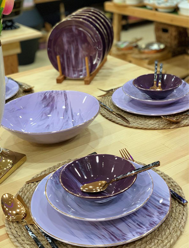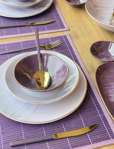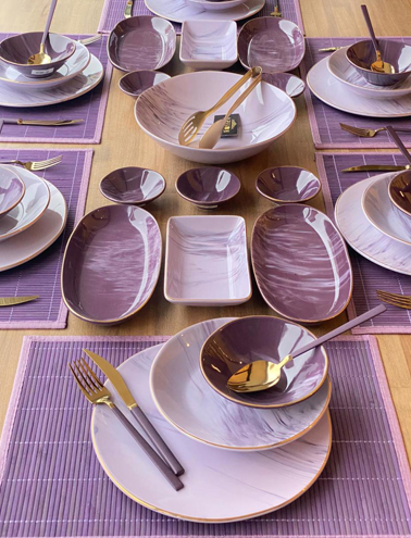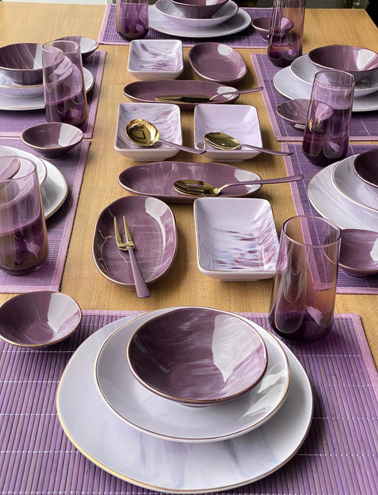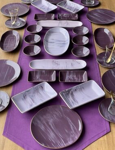 سرویس غذاخوری  6 نفره  ROSSEV ، از جنس سرامیک باکیفیت و در طیف رنگی بنفش عرضه می شود.