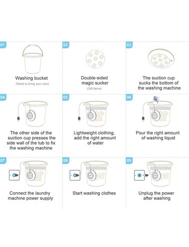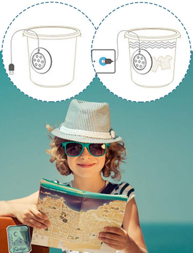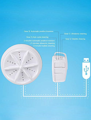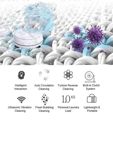 ماشین لباسشویی از طریق USB شارژ می شود که دارای اسپری حباب، جریان دو بعدی، تمیز کردن غوطه وری و امواج اولتراسونیک است.