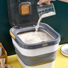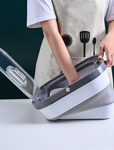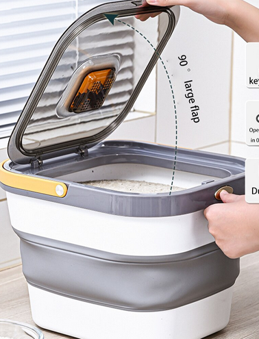سطل برنج سیلیکونی تاشو چند منظوره با درب بازشو اتوماتیک می تواند با آرامش خاطر مواد غذایی شما را نگهداری کند.